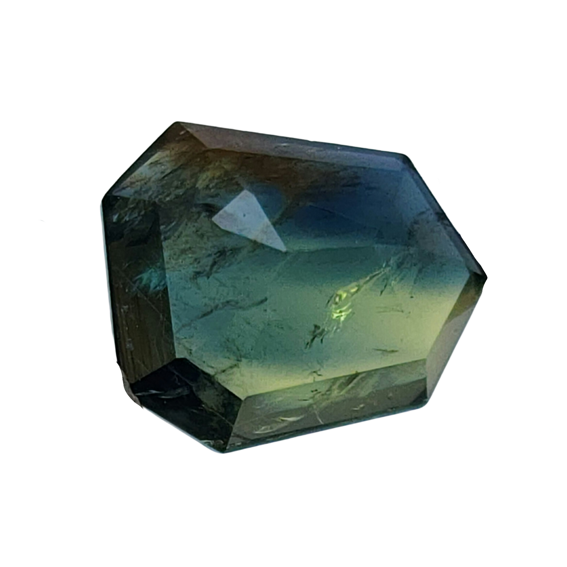 Color: Bi-color teal blue to deep forest green, golden yellow, pleochroic