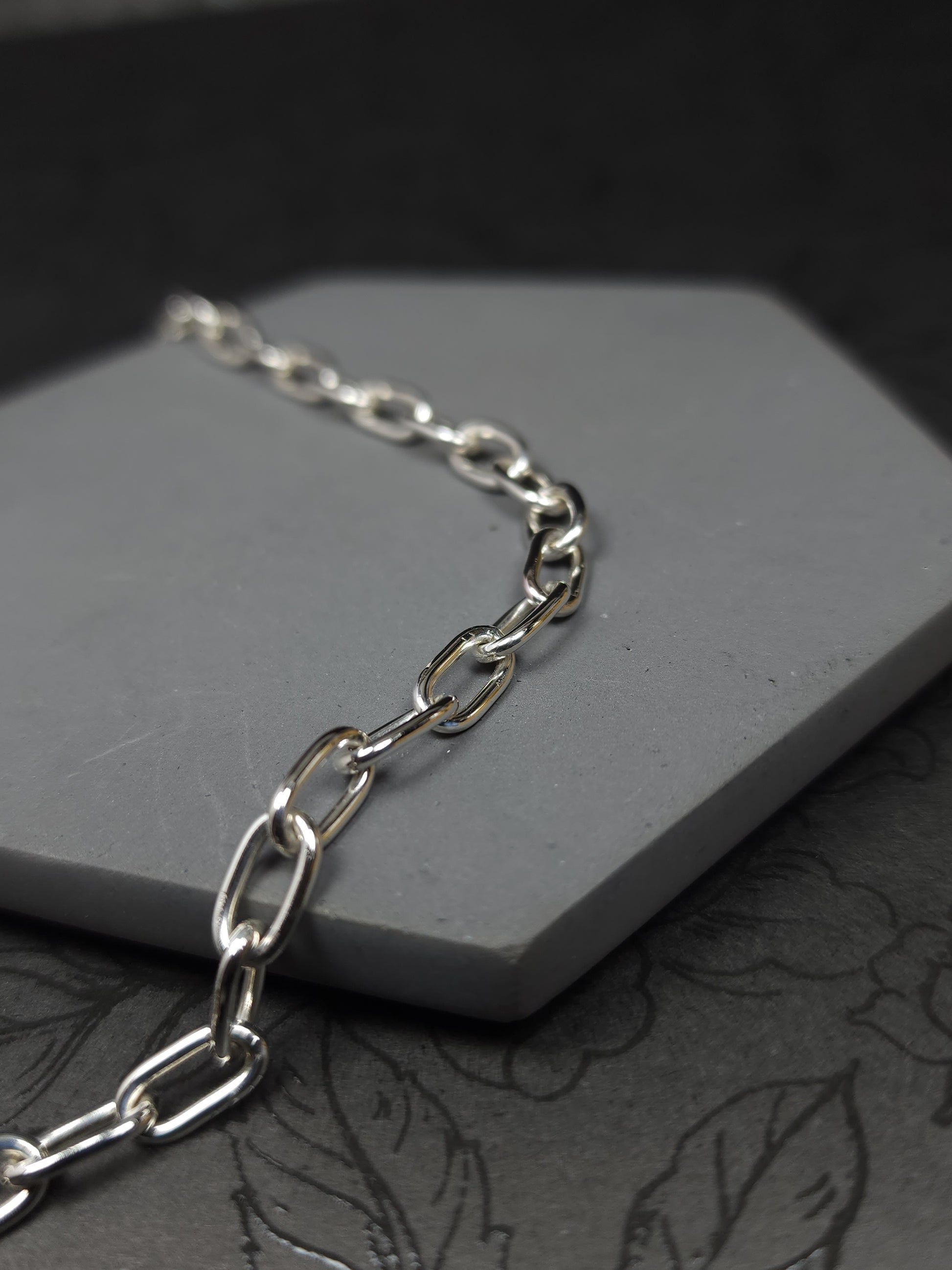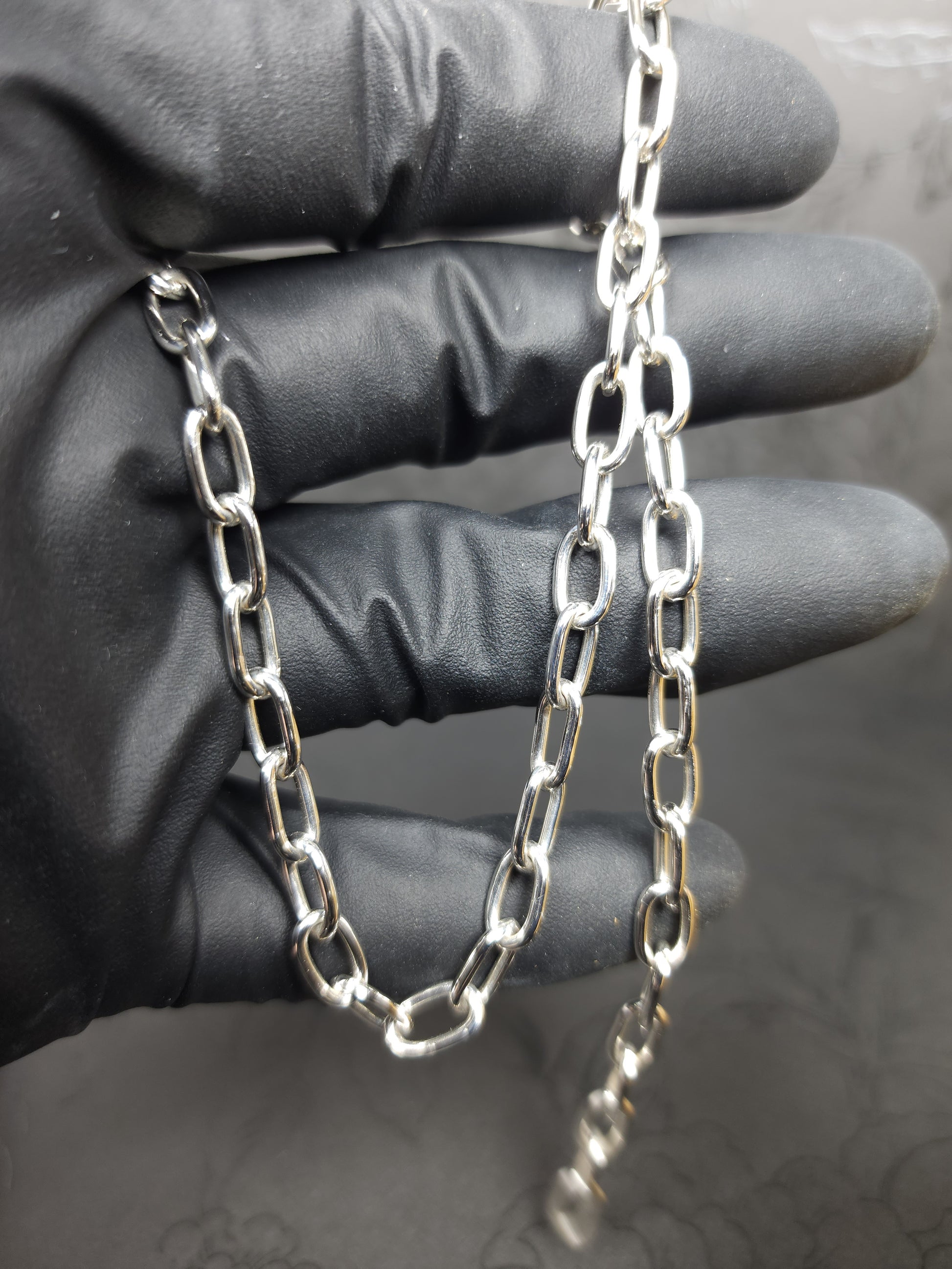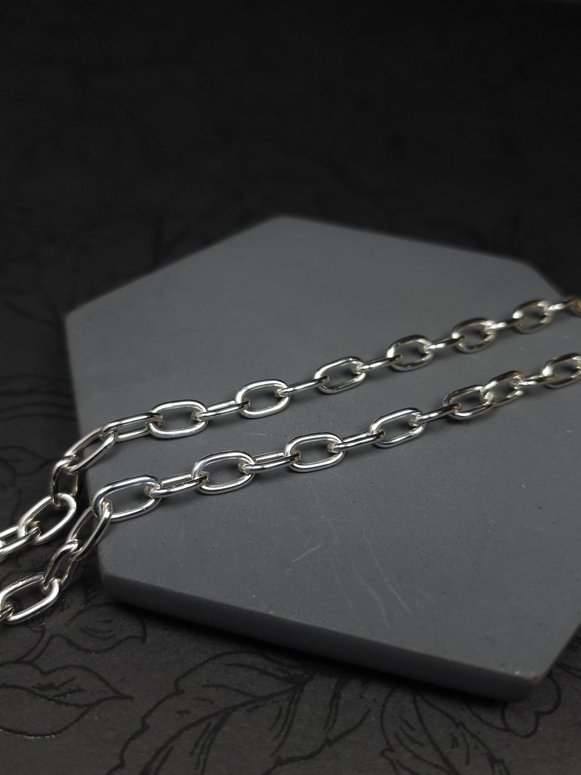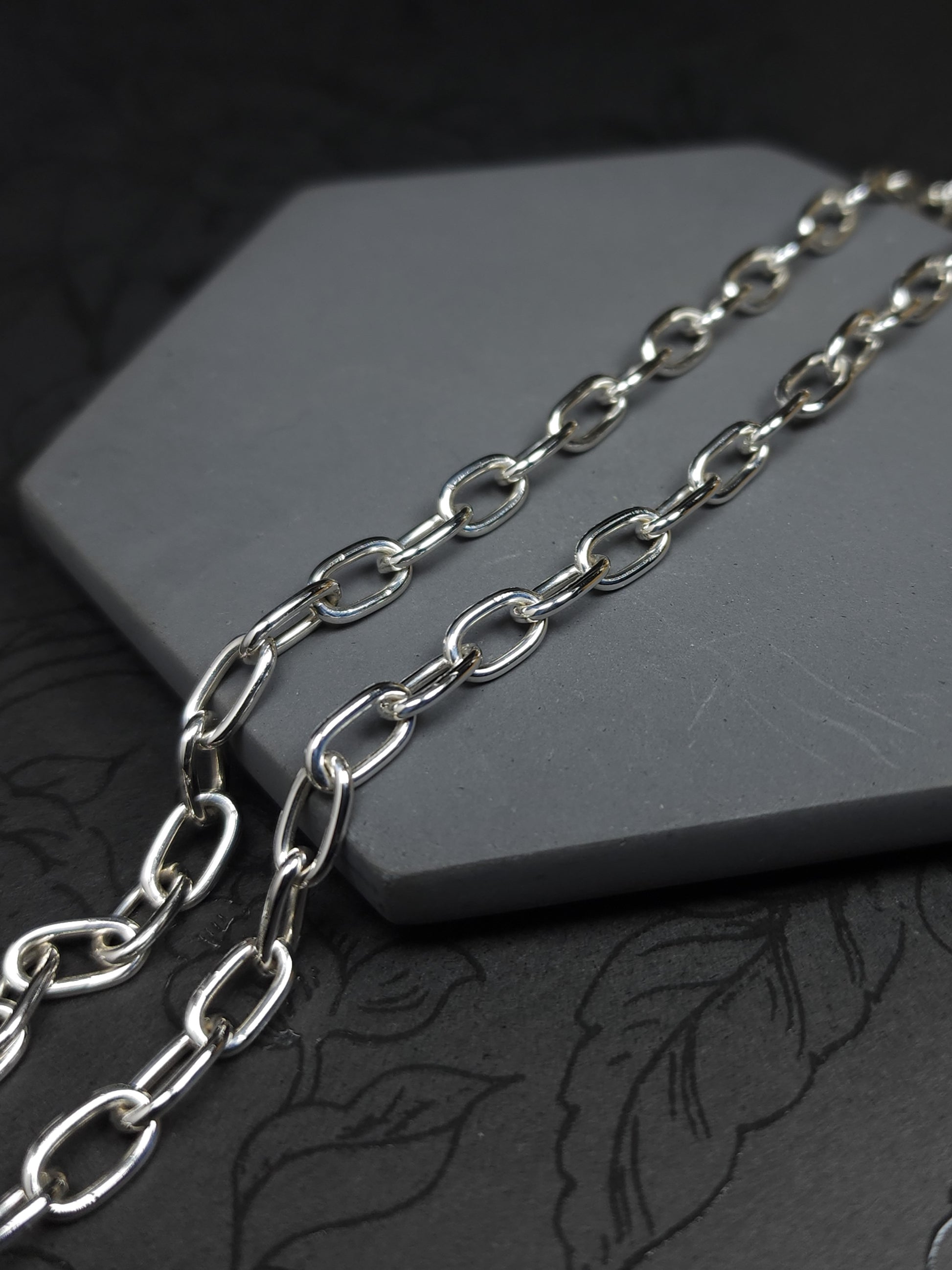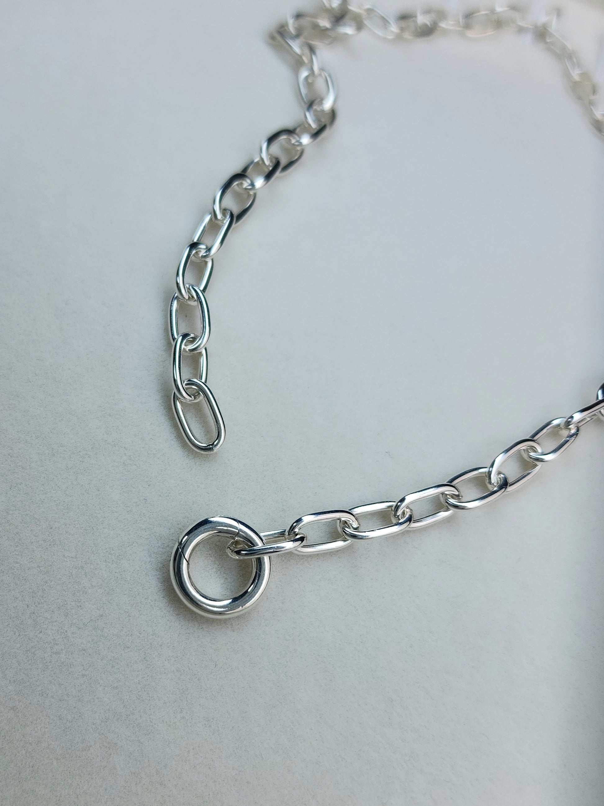 Paperclip handmade sterling silver chain, typical oval links, hand fabricated using traditional silversmithing techniques. It started with round wire that has been formed to desired thickness and wrapped around a mandrel. After removing the coil from the mandrel, I clean it and saw though it to create individual links. Once I have all silver dust removed from all the links & cleaned up, I then assemble them one by one. When the desired length is met, each joint is individually soldered. The chain is then polished, tumbled and ready. (These are not all the steps, just the ones I think I can fit in the description 😅). The ends of this chain are open, meaning there is no clasp attached. I designed it this way because I want to allow you the option to select the clasp you like most. Please remember to select a clasp you would like to go with this chain.